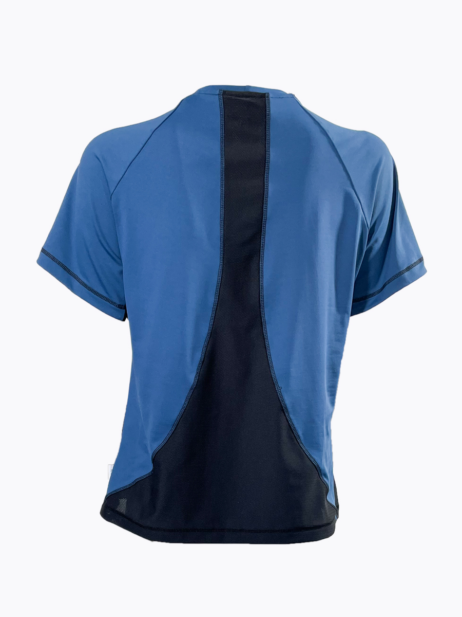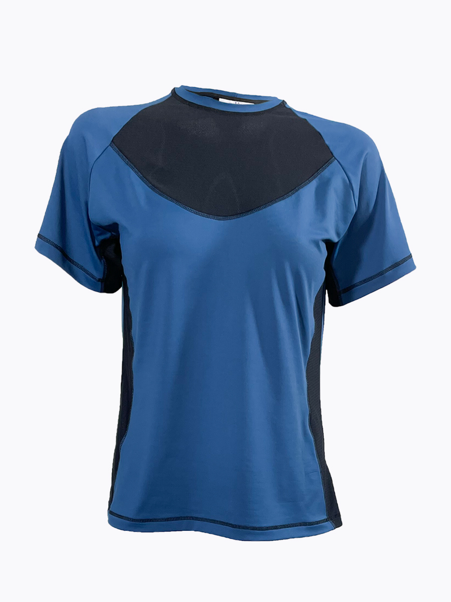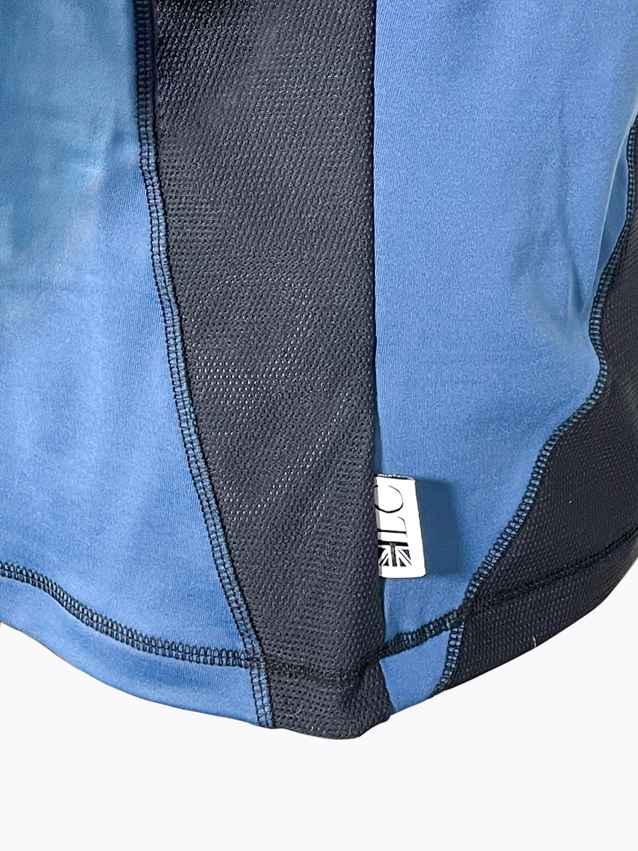 This beautiful stylish ocean blue and black base layer is entirely made in England.  The raglan sleeves allow maximum movability and the length and fit make the base layer extremely comfortable.  The micro-mesh is strategically placed to allow for maximum air flow but also looks stylish and flattering.  There is subtle branding on the side panel and all seams are flat locked for extra comfort. This base layer is generous in fit so we recommend selecting a size smaller than you would normally go for.  So if you are normally a medium we would suggest a small.